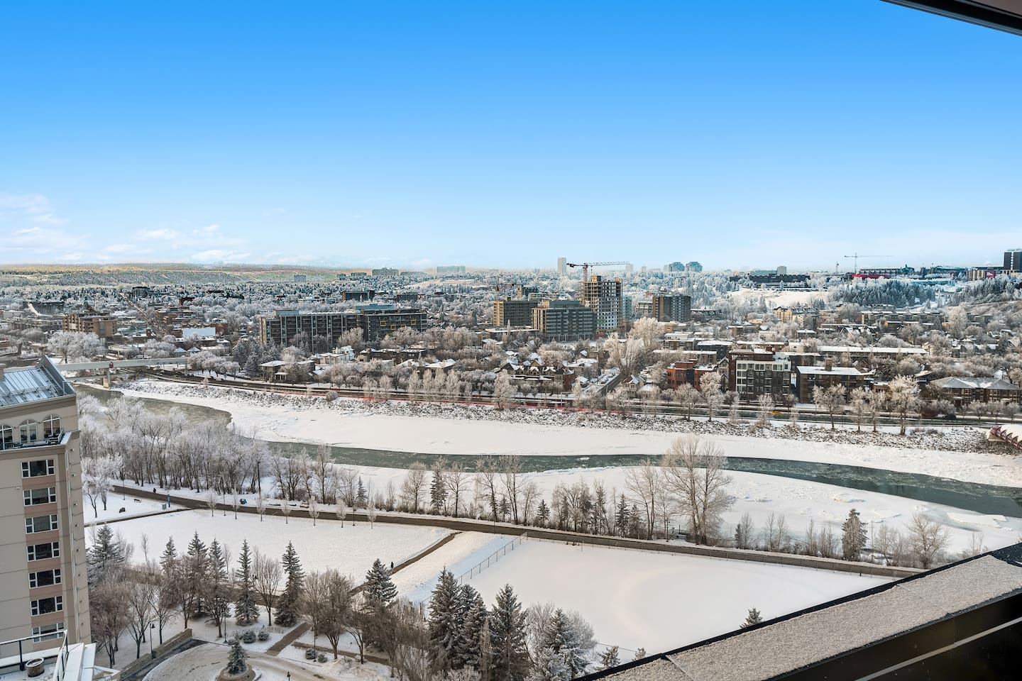 Features Including: - 2 spacious bedrooms and an office that doubles as the third bedroom - 2 modern bathrooms - Gorgeous Wraparound balcony overlooking the downtown core and the boy rives. - High-speed Wi-Fi and multiple Smart TVs - Dedicated workspaces for remote work - Fully equipped kitchen with professional appliances (e.g., 5-burner gas stove) - Coffee station with coffee, creamer, sugar, and tea - Bathrooms fully stocked with shampoo, conditioner, shower gel, hand soap, and hair dryers - Laundry room with washer, dryer, iron, and ironing board - 2 Free underground parking stalls Make yourself at home—the entire place is yours to enjoy. You’ll have 24/7 access to us for any questions or support. We want your stay to be hassle-free and memorable. Our home is your home! However, please treat the space with respect. If you have any issues, let us know right away so we can resolve them during your stay