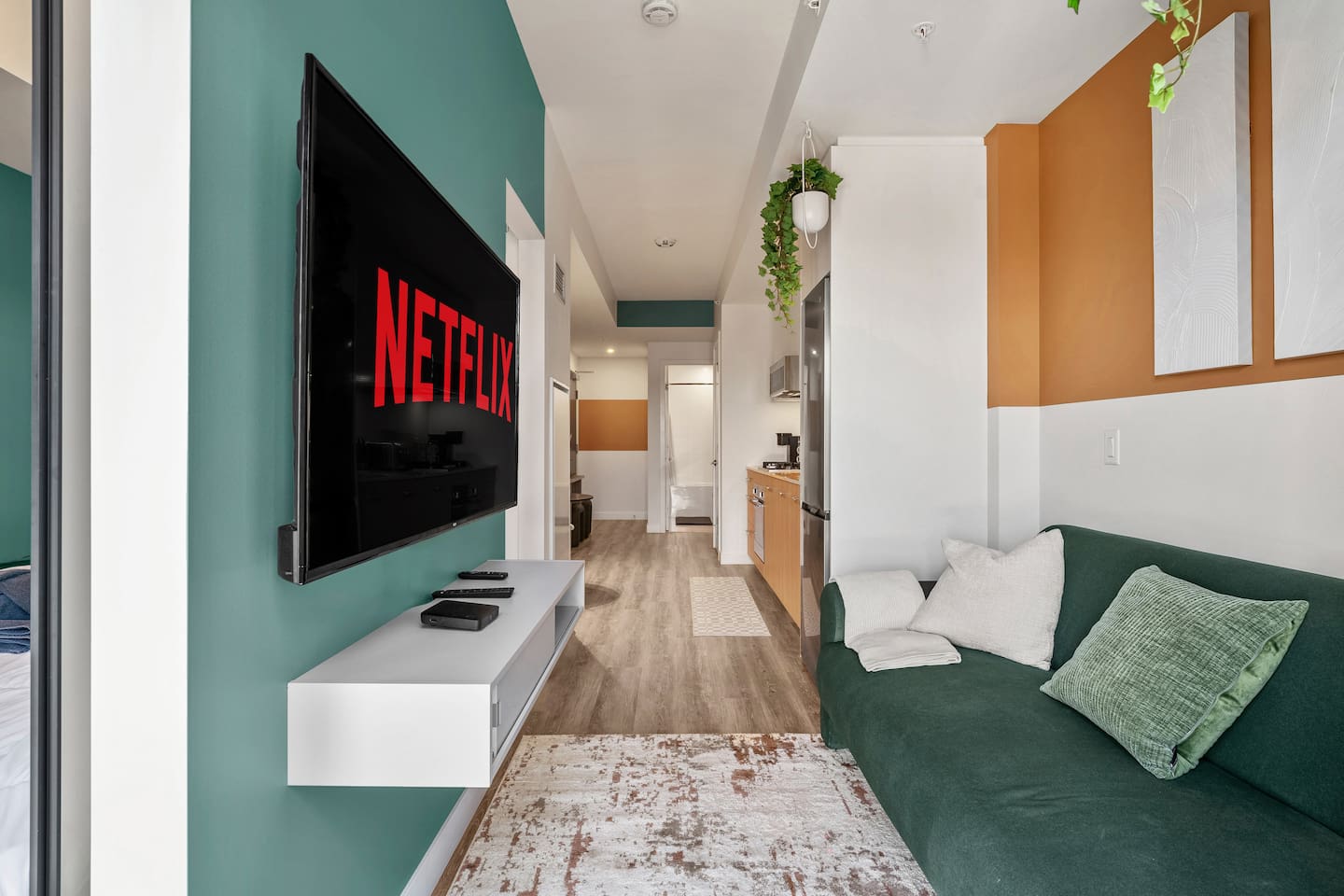 Features Including: - Prime downtown location with stellar city views - 24-hour self check-in for maximum flexibility - Comfortable king-size bed ideal for solo travellers or couples - Dedicated workspace perfect for remote work - Ultra-fast 1 Gig high-speed Wi-Fi - Private balcony to relax and unwind - Gym access for daily workouts - Underground parking stall included - Professionally cleaned with 5-star cleaning standards - Fully equipped kitchen with professional appliances, including a 5-burner gas stove - Coffee station with coffee, creamer, sugar, and tea - Fully stocked bathroom with shampoo, conditioner, shower gel, hand soap, and hair dryer - In-suite laundry with washer, dryer, iron, and ironing board