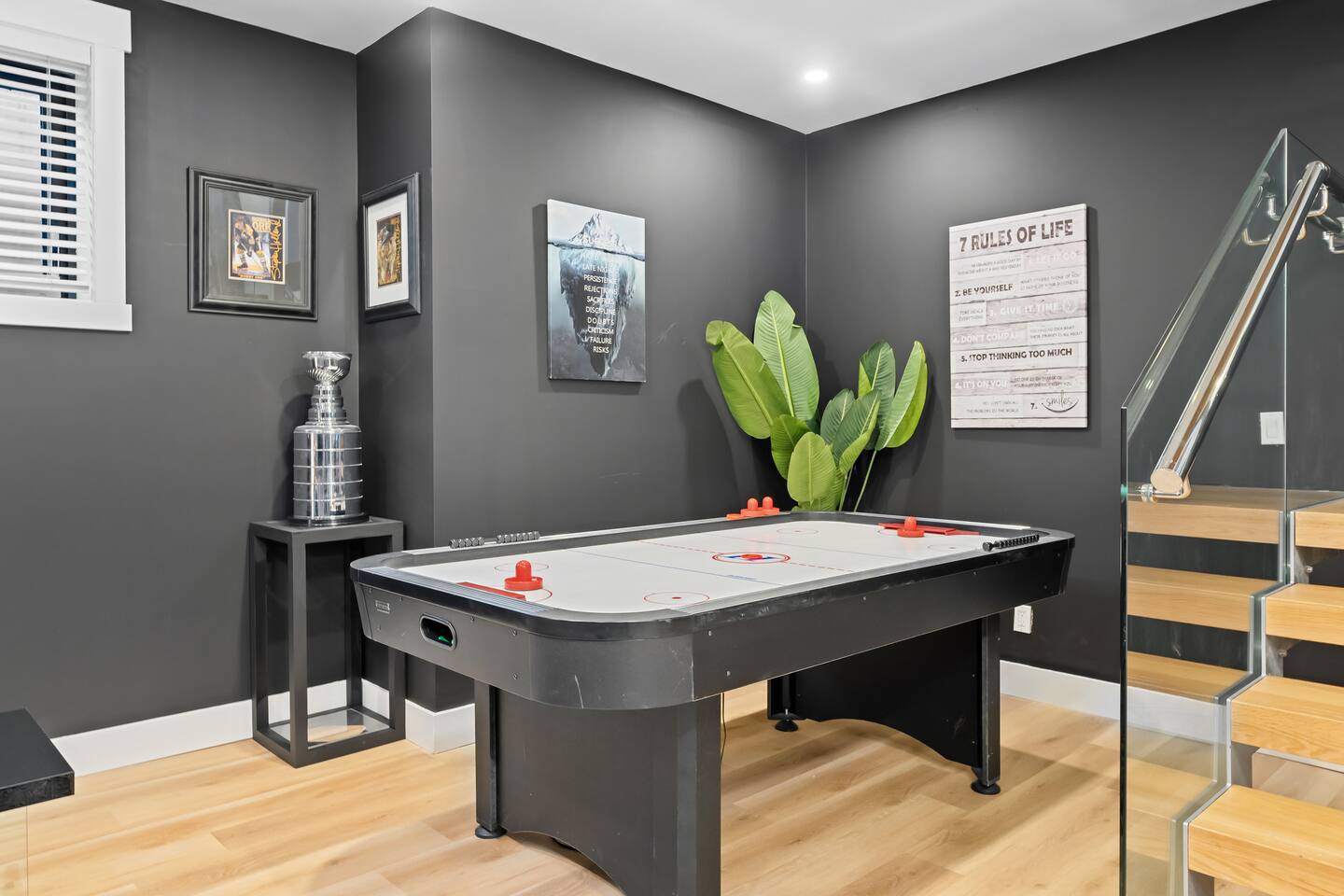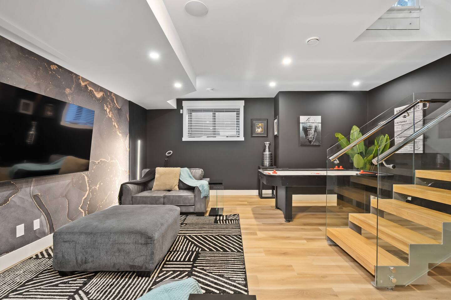 ❤️ This listing to find it later before it gets booked :) Just imagine this… A stunning 5-bedroom luxury home packed with entertainment – arcade machines, a hot tub, pool table, air hockey, karaoke, and more – all nestled in one of Calgary’s most prestigious neighbourhoods. Now stop imagining, because it’s real — and it’s ready for you. This spacious retreat is perfect for families, groups, and business travellers who want room to relax, luxury to enjoy, and memories to create. Welcome Home,