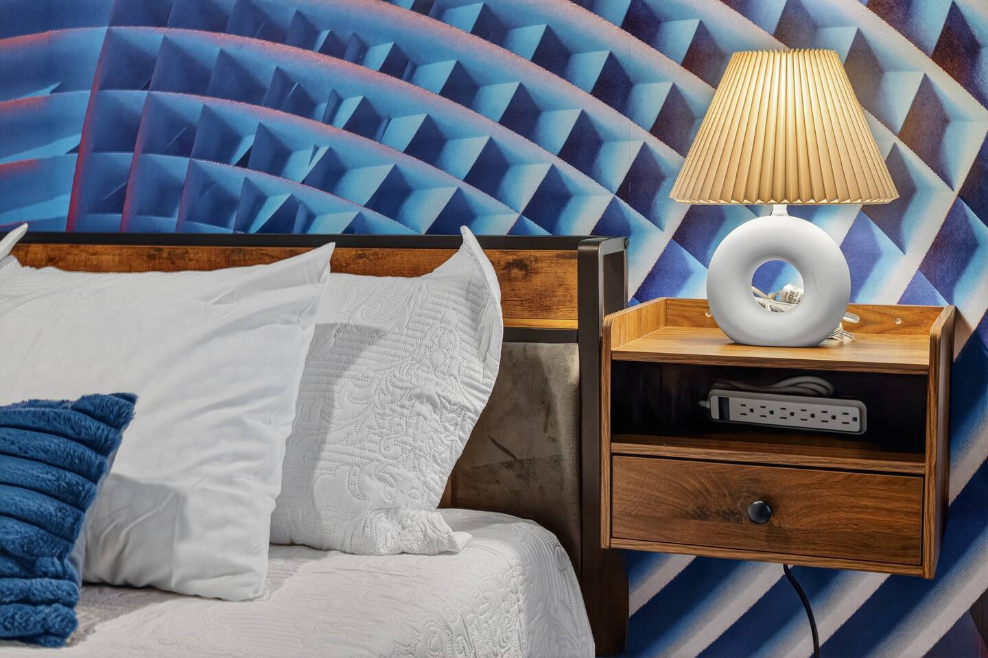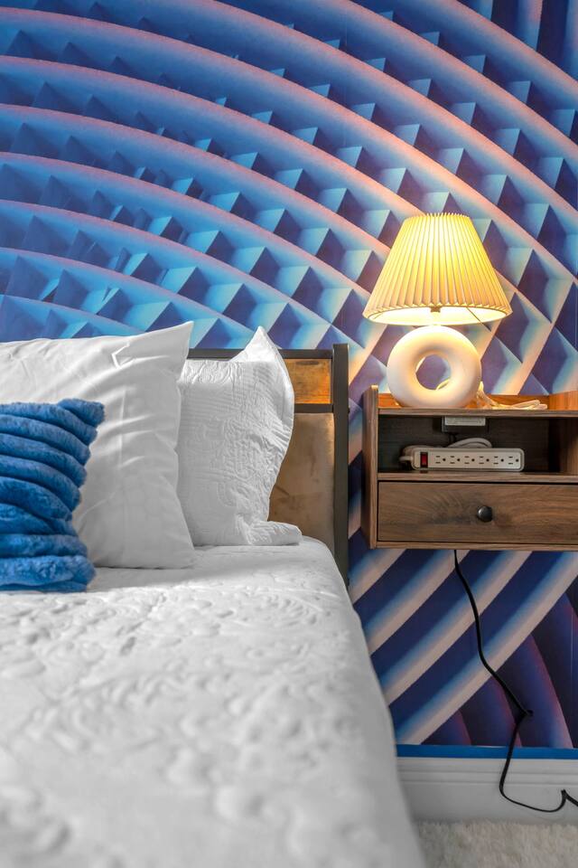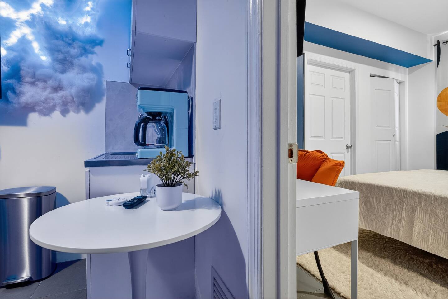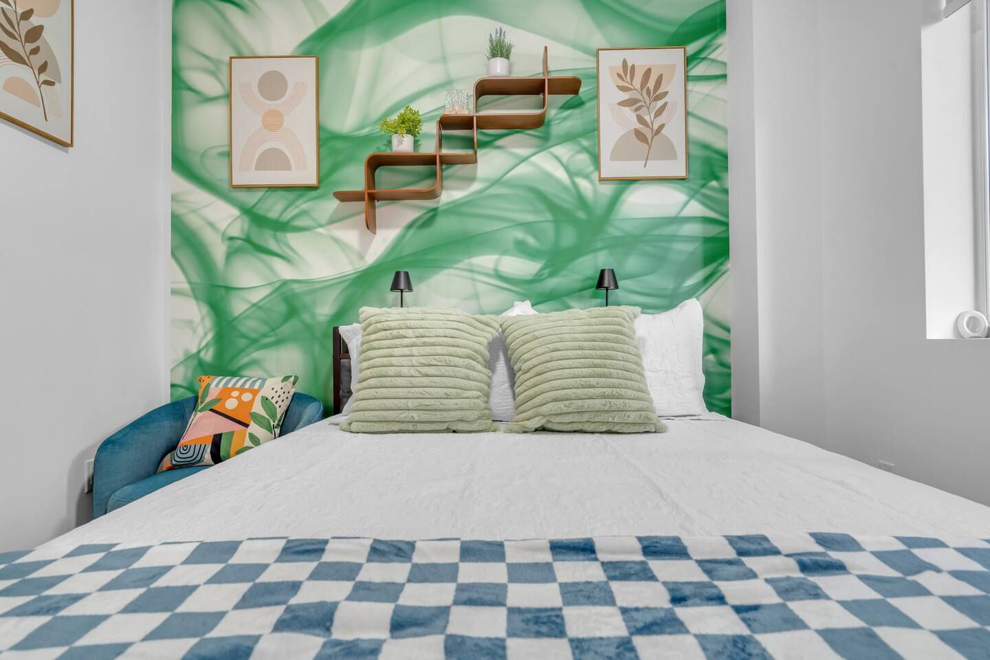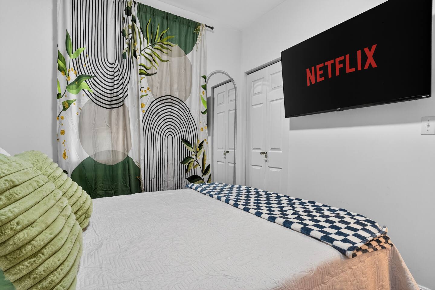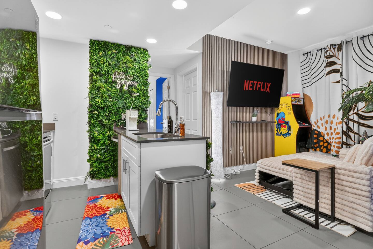 ✨ Experience a one-of-a-kind stay in the heart of Wynwood’s Art District, where bold design, comfort, and creativity come together. This exclusive offering combines two uniquely designed units, rented together as one, perfect for families, groups, or friends traveling together. Unit One features 2 bedrooms and 2 bathrooms, including a king-size bed, and showcases striking, one-of-a-kind wall paintings and murals throughout. The space is elevated with Swedish-imported wallpaper, elegant finishes, and two full-size LED wall mirrors, creating a refined yet artistic atmosphere. Unit Two delivers a truly unforgettable experience with its signature lightning cloud wall and ceiling—a stunning, color-shifting feature that syncs with music to create a fully immersive vibe. This unit comfortably sleeps four, offering a plush king bed in the primary bedroom and a sleek sofa that converts into a double bed, blending style with functionality. ✨ Together, both units—conveniently located side by side—comfortably accommodate up to 9 guests, giving your group plenty of space, privacy, and flexibility. Enjoy double the space, double the value, and thoughtful design details you won’t find anywhere else—perfect for families or groups traveling together. ✔0.8 miles to Wynwood ✔8 minutes to Downtown/Brickell ✔15 minutes to South Beach and; ✔12 minutes to MIA. Located just minutes from Wynwood’s famous murals, galleries, dining, and nightlife, this combined retreat is perfect for guests seeking an artistic, vibrant, and memorable Miami stay.