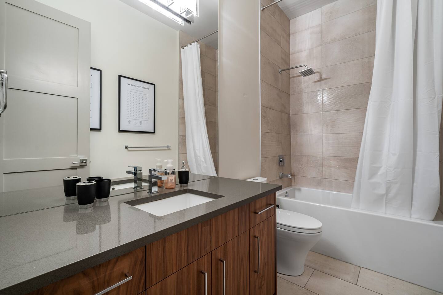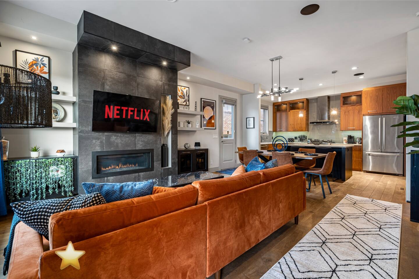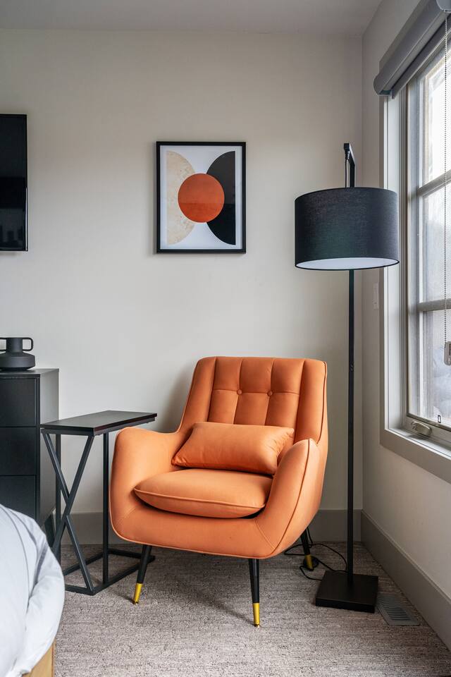 Features Including: - Master bedroom features a balcony with spectacular downtown view. - 2 Designated work spaces. - Three large Smart TV's on 3 different levels. - Fast 1 Gig Wifi speed. - Dining table that seats 6 people. - Two person jetted shower in the master bedroom ensuite bathroom. - Finished basement with a 12 in 1 games table includes (Air hockey, traditional foosball, shootout basketball, ping pong, bag toss archery, and so much more!) - Large TV's. - Mini fridge in basement rec room. - Large closets in all bedrooms. - 3 Full bathrooms and 1 half bath. - Professional appliances including a 5 burner gas stove. - Coffee station with coffee, creamer, sugar & tea. - All bathrooms are fully stocked with shampoo, conditioner, shower gel, hand soap and hair dryers. - Laundry room with washer & dryer, iron and ironing board