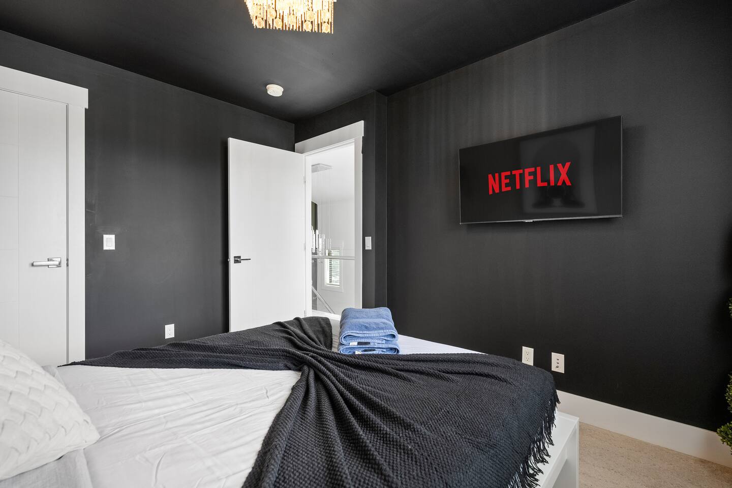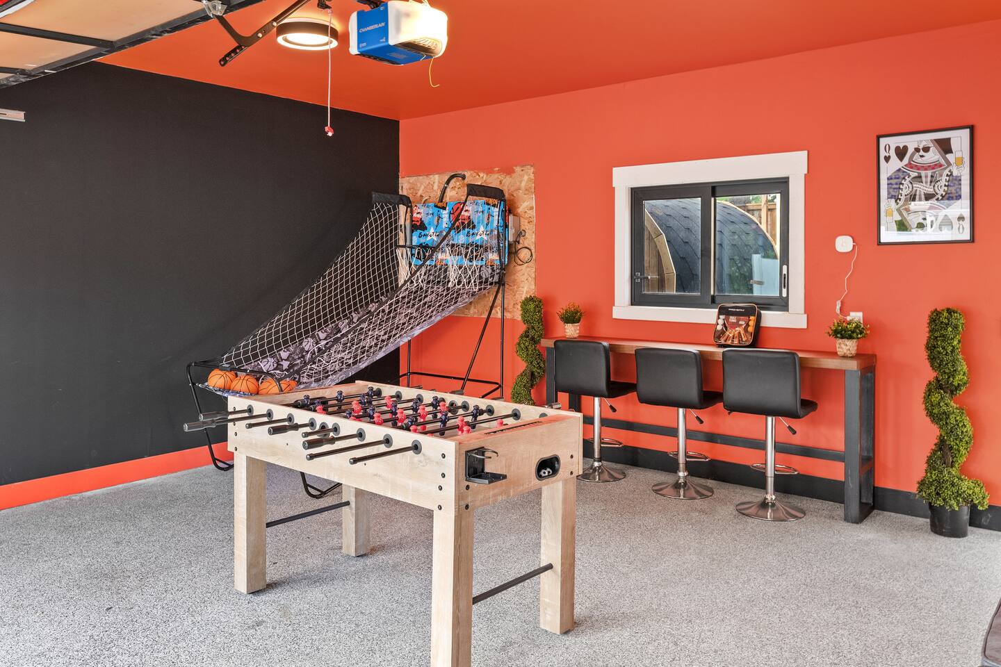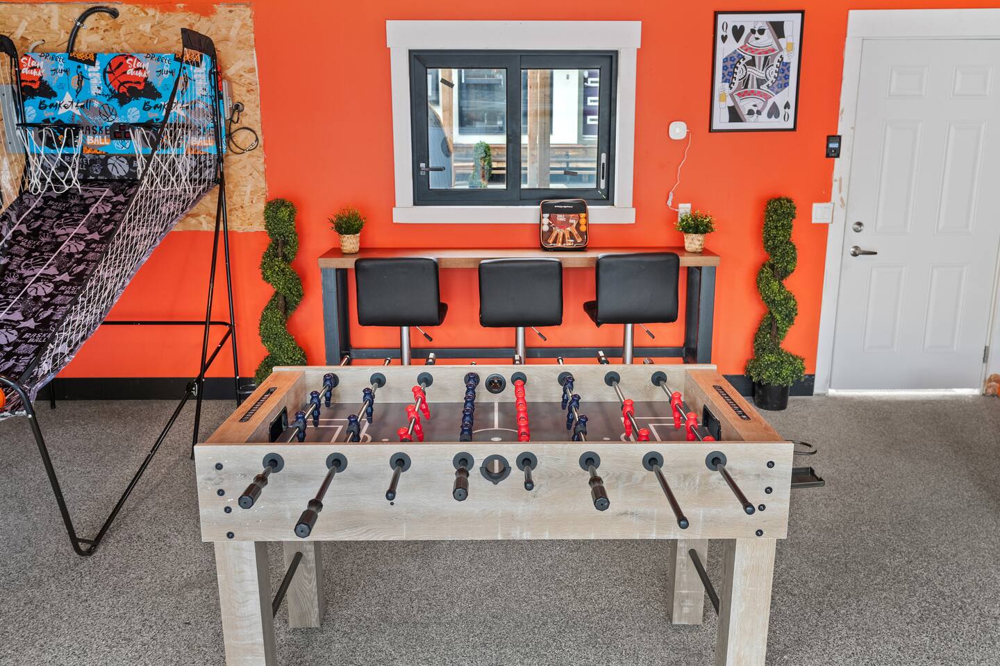 Brand New 6-Person Sauna Game room with: -Basketball net, -Pingpong -Foosball Table, -and more! This is where the fun is... - Beautiful Outdoor Area - Master bedroom features an Ensuite and a Private Tub with its own Fire Place. - *5* Designated work spaces! - Large Smart TV's on every level - Fast 1 Gig Wifi speed. - Dining table that seats 10-12 people. - jetted shower in the master bedroom ensuite bathroom, and third floor. - Large TV's. - Large closets in all bedrooms. - 4 Full bathrooms and 1 half bath. - Professional appliances including a 5 burner gas stove. - Coffee station with coffee, creamer, sugar & tea. - All bathrooms are fully stocked with shampoo, conditioner, shower gel, hand soap and hair dryers. - Laundry room with washer & dryer, iron and ironing board