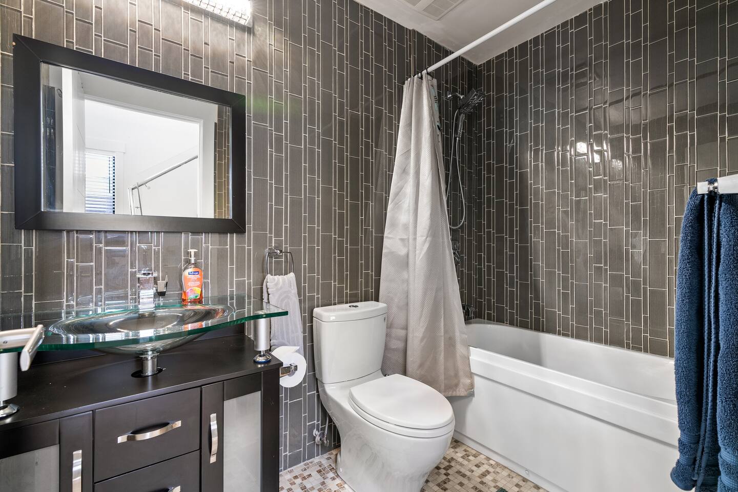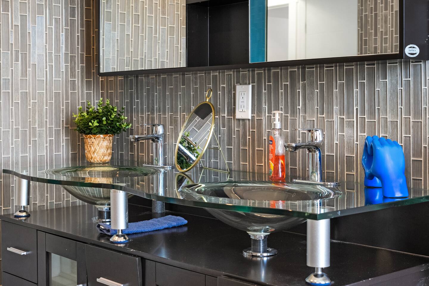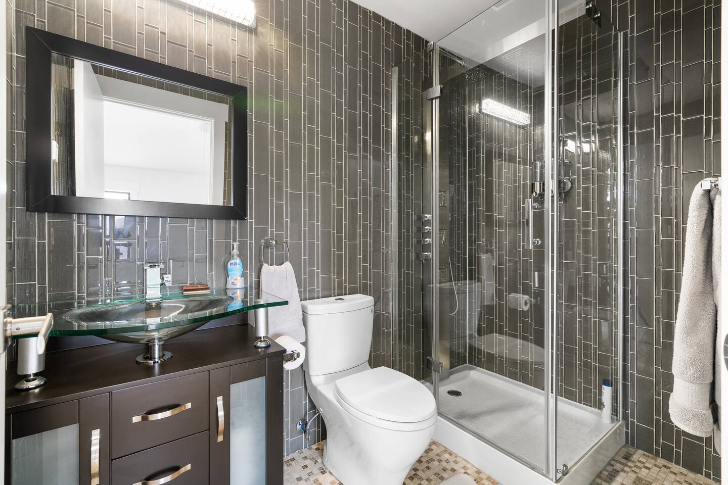 Brand New 6-Person Sauna Game room with: -Basketball net, -Pingpong -Foosball Table, -and more! This is where the fun is... - Beautiful Outdoor Area - Master bedroom features an Ensuite and a Private Tub with its own Fire Place. - *5* Designated work spaces! - Large Smart TV's on every level - Fast 1 Gig Wifi speed. - Dining table that seats 10-12 people. - jetted shower in the master bedroom ensuite bathroom, and third floor. - Large TV's. - Large closets in all bedrooms. - 4 Full bathrooms and 1 half bath. - Professional appliances including a 5 burner gas stove. - Coffee station with coffee, creamer, sugar & tea. - All bathrooms are fully stocked with shampoo, conditioner, shower gel, hand soap and hair dryers. - Laundry room with washer & dryer, iron and ironing board