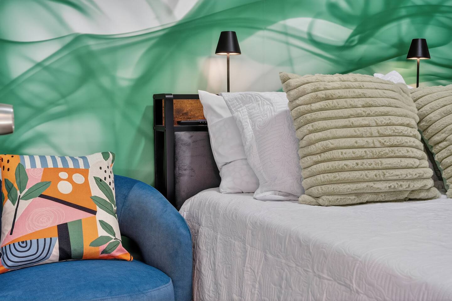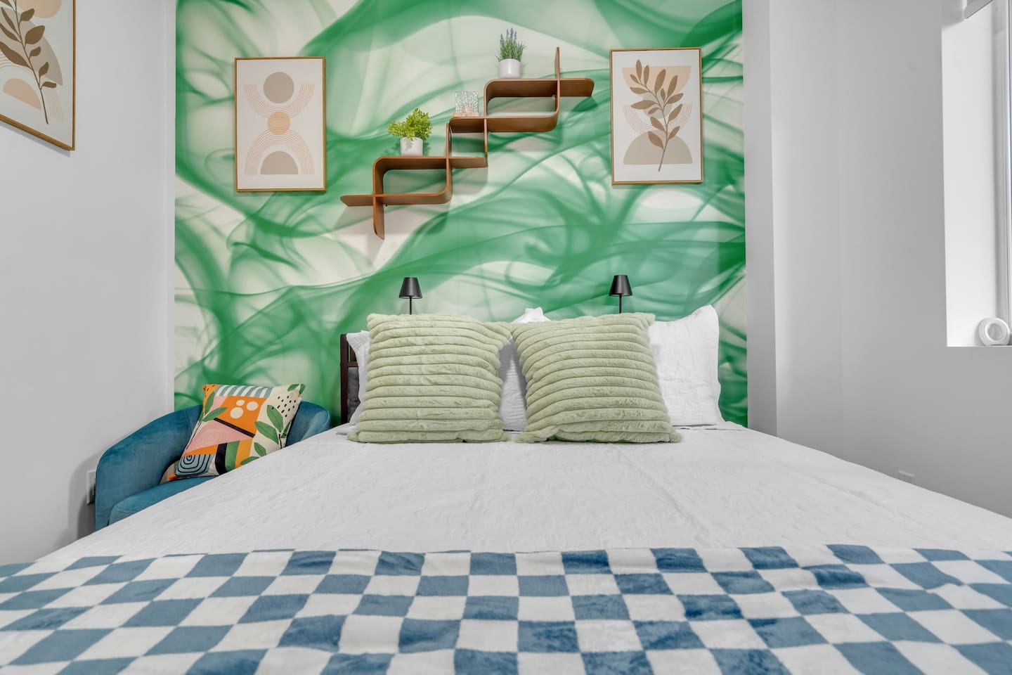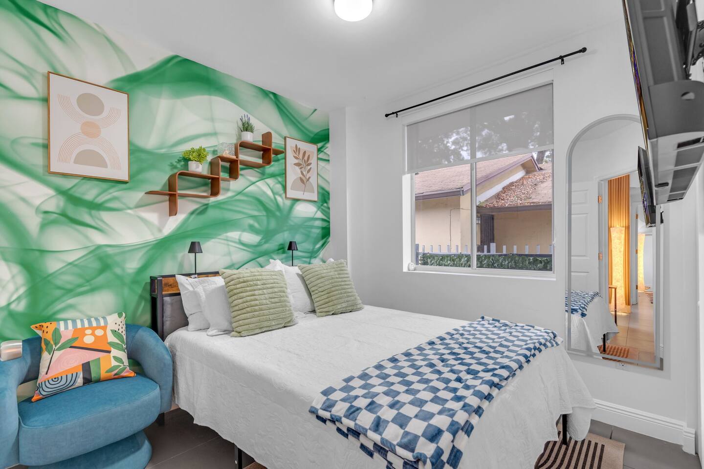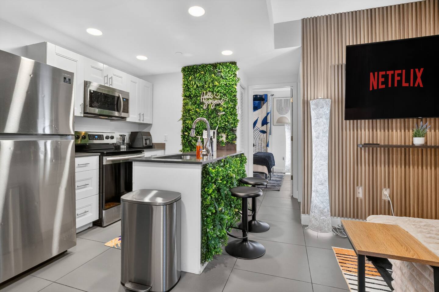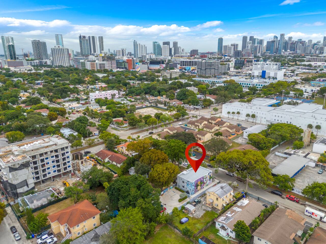 An extraordinary 2-bedroom, 2-bathroom home in Wynwood's Art District featuring unique wall paintings & murals. The residence boasts Swedish-imported wallpapers, elegant paint with two full size led wall mirrors. It includes a sofa transforming into a double bed, one king bed, one queen bed — all with high-pressure, multi-stage filter showerheads. Located 0.8 miles from Wynwood's hotspots, it's 8 minutes to Brickell, 15 to South Beach, & 12 to Miami Airport with immediate & easy highway access