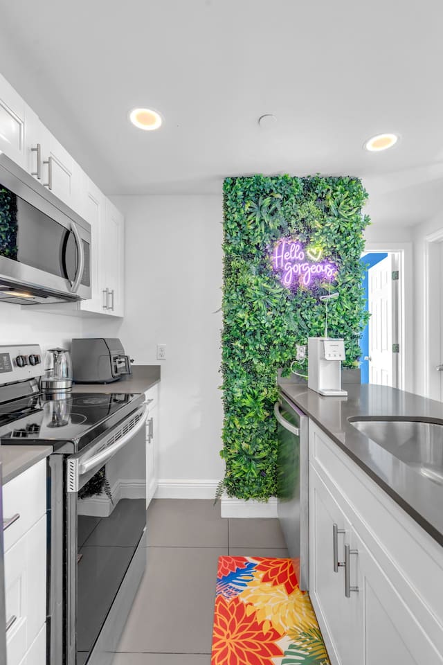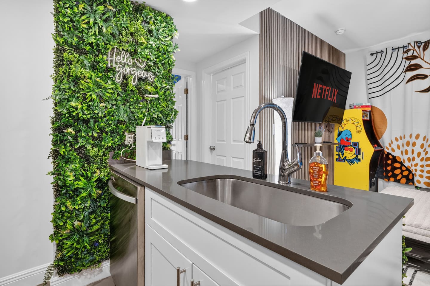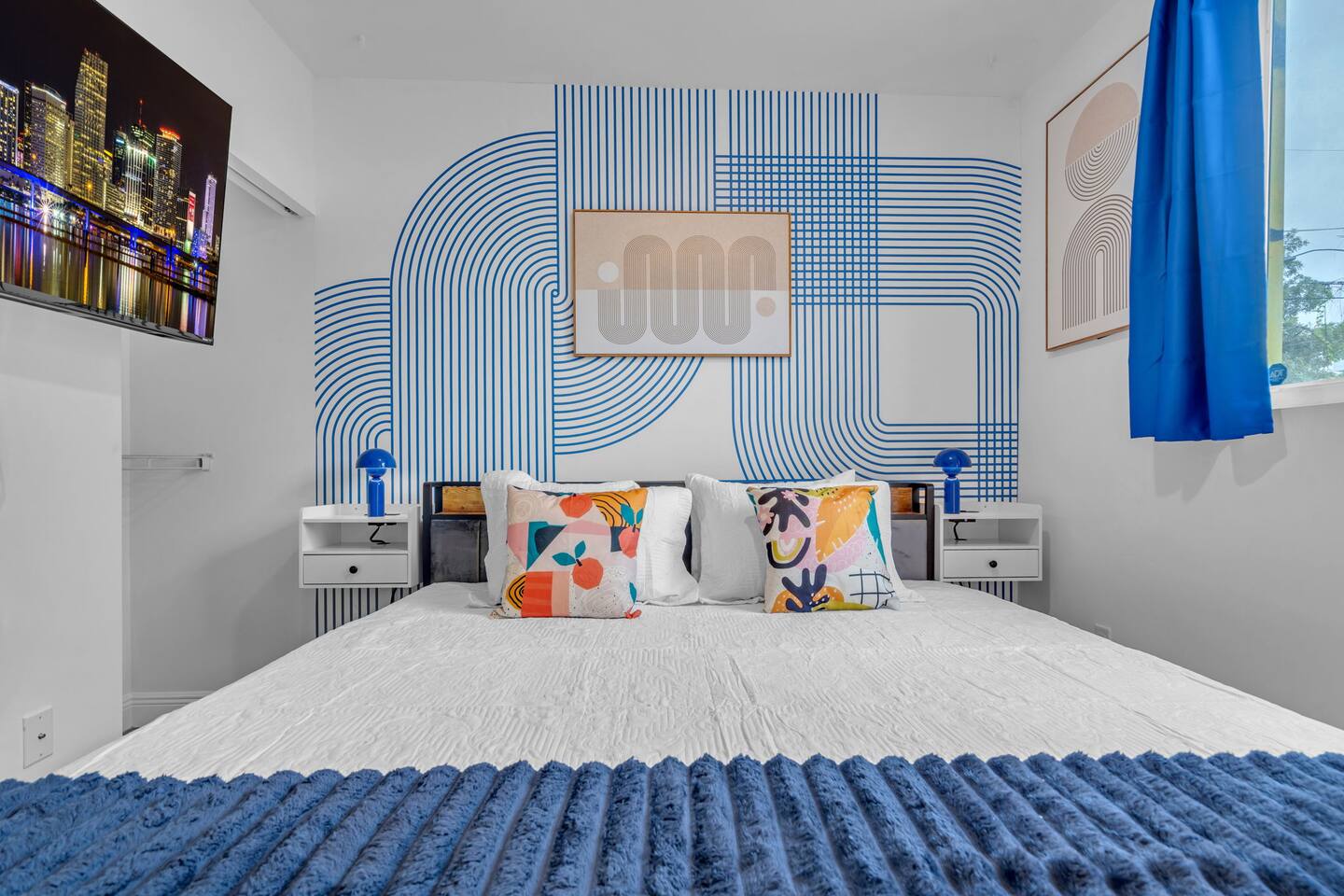 Welcome to a stunning and unique residence nestled in the heart of Wynwood's Art District, where creativity and convenience converge. This exquisite 2-bedroom, 2-bathroom property is an art lover's dream, featuring striking one-of-a-kind wall paintings and captivating murals that transform every room into a visual masterpiece. The home boasts a spectacularly unique array of wallpapers imported from Sweden, infusing international elegance and style throughout the space. Each bedroom is uniquely painted, showcasing vibrant, eye-popping designs that enhance the overall charm. For ultimate comfort and versatility, the living area includes a sofa that seamlessly convert into a double bed, accommodating additional guests with ease. Each of the two bedrooms offers luxurious sleeping arrangements, featuring a king-size bed and one queen bed, all equipped with floating nightstands that come with multiple charging outlets for your modern devices. The property includes an in-unit modern washer and dryer, a dishwasher, an electric stove, and a refrigerator, making daily living effortless and convenient. Every bathroom is fitted with a dedicated workspace and high-pressure, multi-stage filter showerheads that provide a refreshing and invigorating experience. Entertainment is seamless with two 55" 4K Roku TVs and one 65" 4K Roku TV, ensuring that you can enjoy your favorite shows and movies anytime. Additionally, immerse yourself in nostalgia with a multi-cade Pac-Man machine, pre-loaded with your favorite arcade classics for endless fun. Ensuring your peace of mind, the property is equipped with 10 security cameras offering 360-degree protection, along with a coded security gate for a private parking lot, providing both safety and convenience. Located just 0.8 miles from Wynwood's vibrant clubs, bars, and renowned dining establishments, this property places the best of Miami's nightlife and culinary scene right at your doorstep. Moreover, you are a mere 8 minutes from downtown Brickell, 15 minutes from the iconic South Beach, and 12 minutes from Miami International Airport, with immediate access to major highways for unparalleled convenience. This home is perfect for those who appreciate art, luxury, and the dynamic energy of one of Miami's most exciting neighborhoods, providing both an idyllic retreat and a hub for exploration. Don't miss the opportunity to own a piece of this vibrant lifestyle!